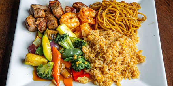 Choose from fresh proteins and sides, cooked on-site by our hibachi chefs: